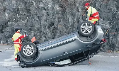 Vettura urta la roccia e poi si capovolge