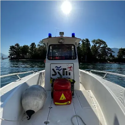 Nel corso degli anni, la missione della Ssm si è ampliata… «Nel 2002, l’impegno non rimase più confinato alle profondità del lago: la società iniziò un’importante attività di prevenzione sulle rive comunali, portando tra la gente la cultura della sicurezza e della consapevolezza. Il 2006 poi fu un anno significativo, a cominciare dall’ottenimento del riconoscimento ufficiale quale scuola Cmas Swiss diving (il ramo svizzero della Confederazione mondiale delle attività subacquee, ndr), un traguardo che certificò la qualità della formazione. Nello stesso periodo entrò in funzione la centralina per le miscele “trimix”, che permise nuove possibilità operative per le immersioni tecniche. Nacque anche una sinergia con la Polizia lacuale e con le altre società di salvataggio, che diede vita a esercitazioni congiunte e collaborazioni sul territorio. Tra queste c’è ad esempio il servizio acque sicure, condiviso con le altre società di salvataggio e che ci vede tutt’oggi impegnati in un picchetto sul Lago Maggiore per quattro settimane all’anno». Fulcro e strumento essenziale in particolare per questa attività, l’imbarcazione… «Tra il 2007 e il 2008, grazie anche al Comune di Minusio e ad alcuni sponsor, un sogno prese forma sulle onde con la nuova barca di salvataggio Verbanella (modello Ocean Master 27”), adibita appositamente all’attività subacquea e di salvataggio. Un simbolo di progresso, determinazione e lavoro di squadra che diventò presto il cuore pulsante delle operazioni in acqua, accompagnando fino a oggi la storia della nostra società».