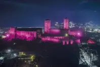 Castelgrande e la chiesa di san Martino tinti di rosa