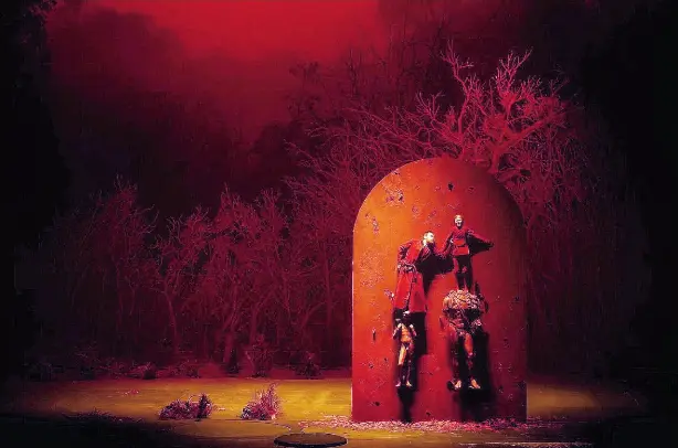 Fanciulla e due cavalieri nella foresta simbolista